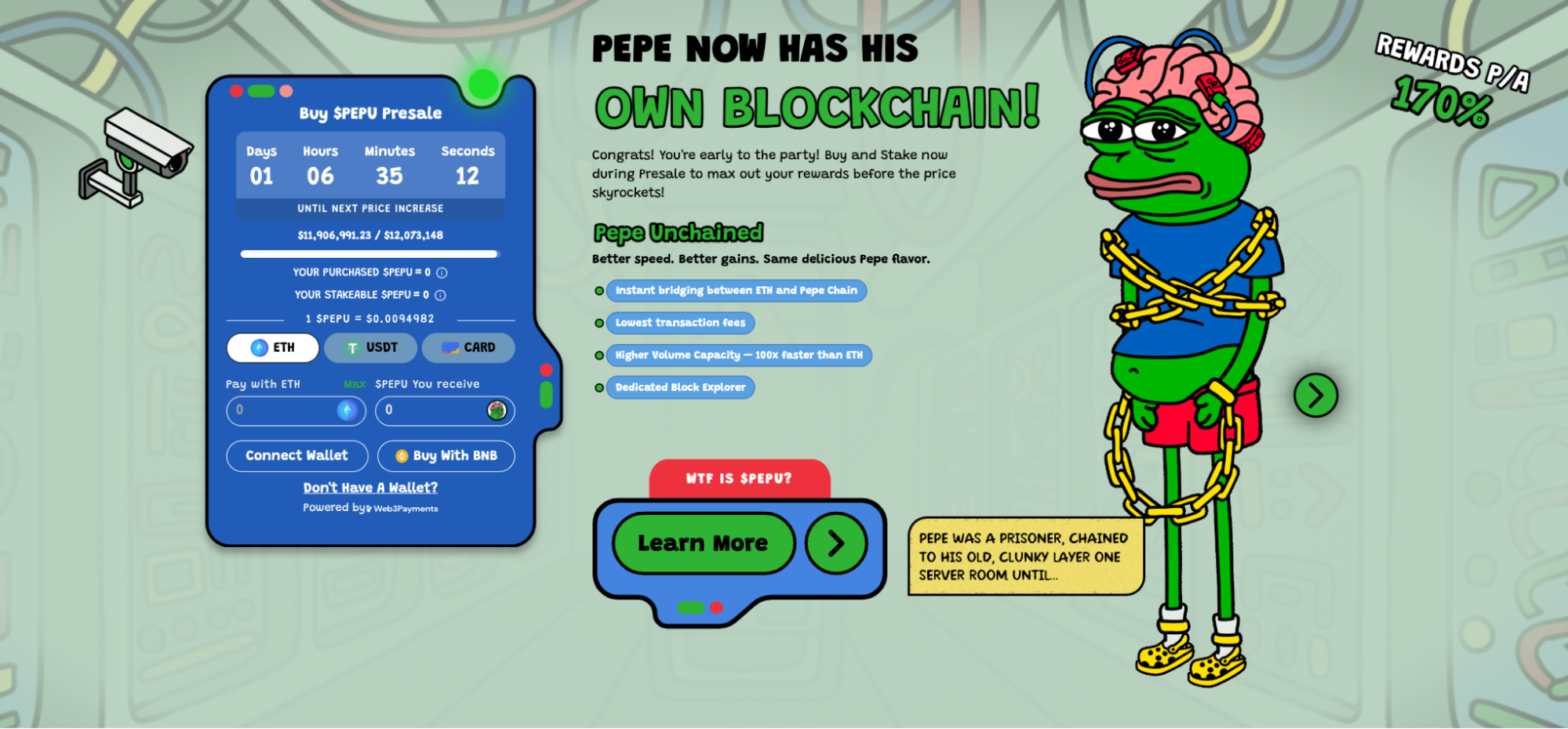 Il prossimo sulla nostra lista è Pepe Unchained (PEPU), un progetto che unisce il fascino della meme coin e le ambizioni tecnologiche.