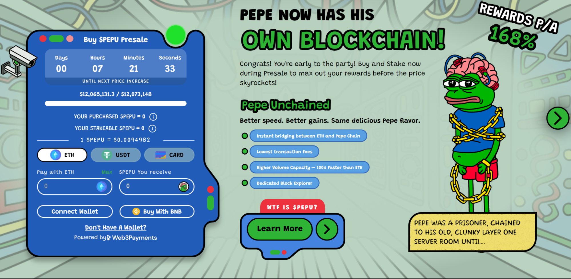 Pepe Unchained – una nuova meme coin a tema rana – è molto richiesta, avendo già raccolto oltre 12 milioni di dollari in finanziamenti prevendita.