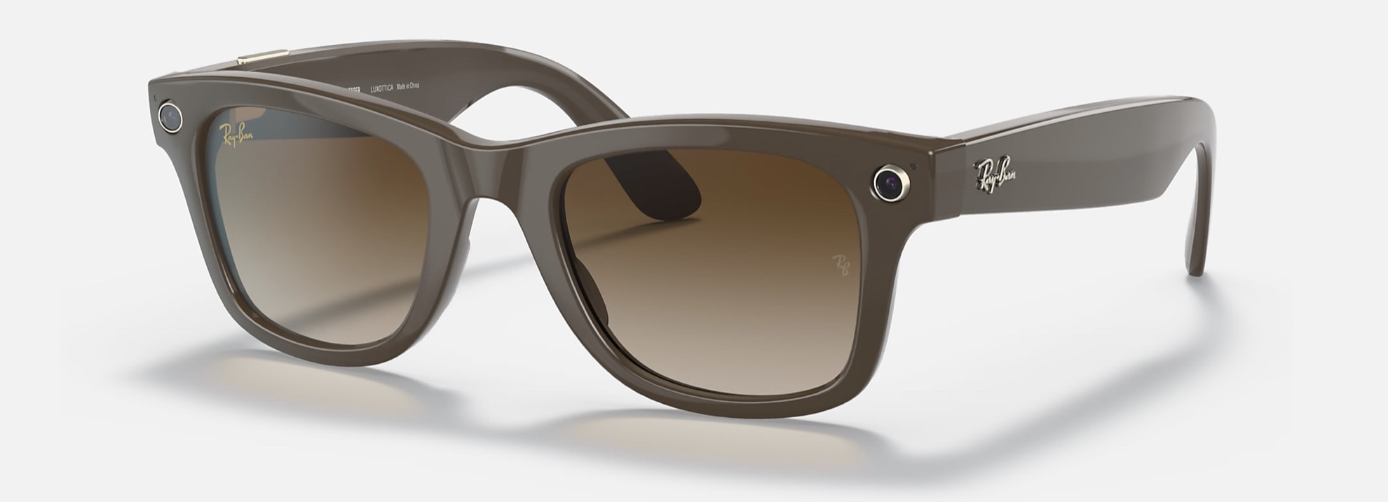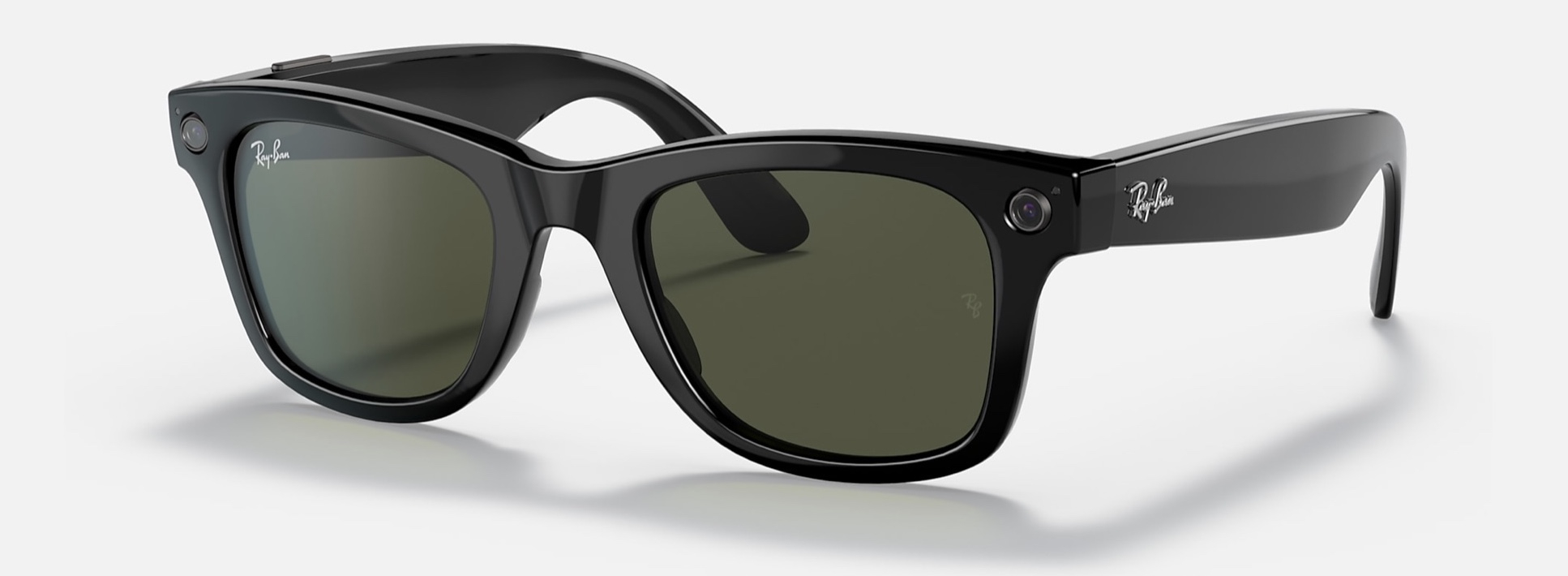 I nuovi Ray-Ban Stories sono a tutti gli effetti degli occhiali Ray-Ban – disponibili nelle tre linee più famose del popolare brand di occhiali da sole e da vista: Wayfarer, Round e Meteor – dotati di una doppia fotocamera da 5 MP posizionata nella parte frontale della montatura, mentre in una delle stanghette è inserito il controllo touch che ci permette di scattare foto, registrare video o mettere in pausa un brano col semplice tocco delle dita.
