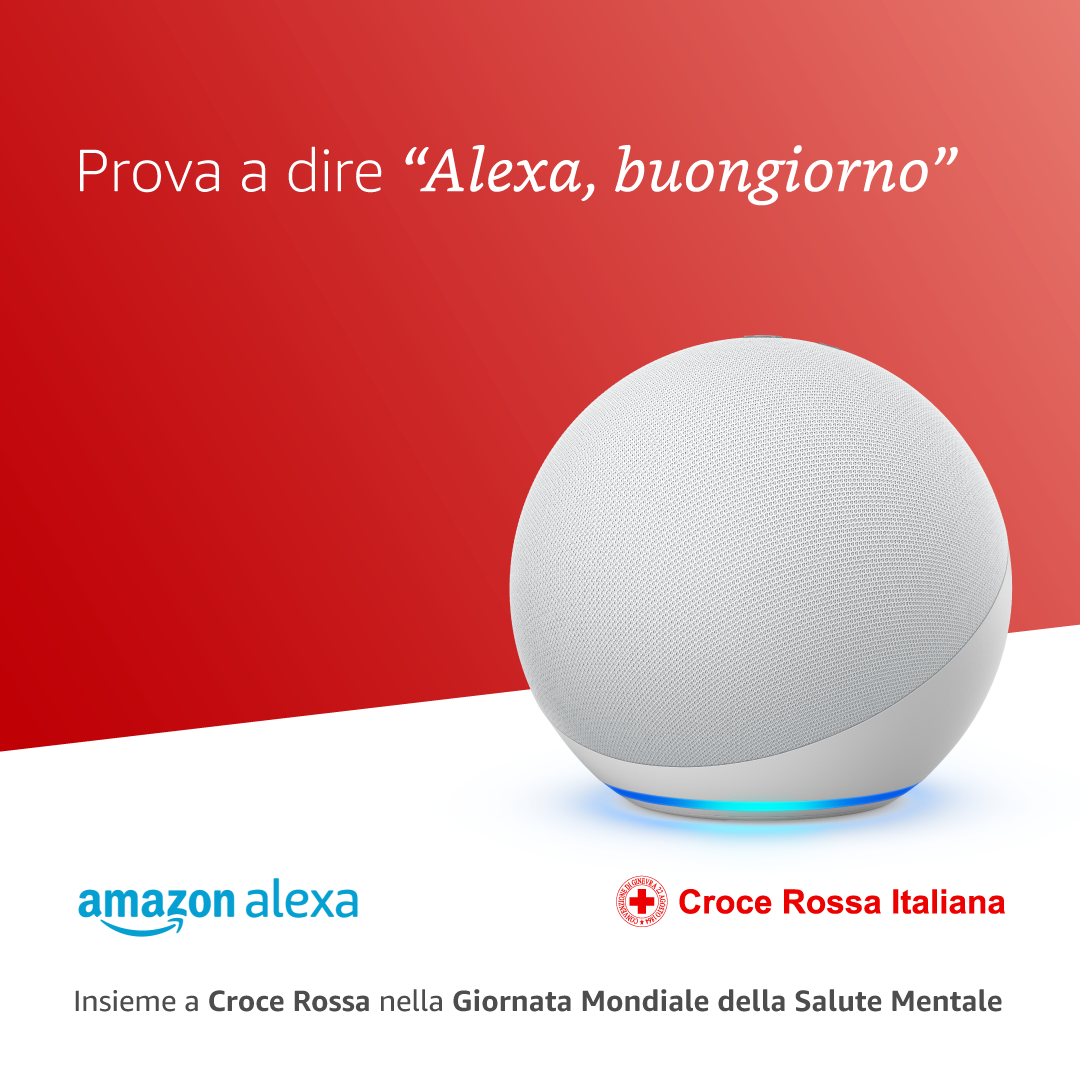 “Oh ciao. Sì, sto bene… forse. Voglio dire, ma sì, sto bene. Niente di importante. Ma sentirsi sempre tristi, preoccupati e ansiosi non è la normalità: potrebbero essere sintomi di un disagio emotivo che richiede un aiuto. Chiedere aiuto è segno di forza. Parlare apertamente con familiari, amici o professionisti può aiutare. Se vuoi saperne di più riguardo al tema della salute mentale e ascoltare delle informazioni da parte della Croce Rossa Italiana, prova a dire “Alexa, dammi più informazioni sulla salute mentale”. Sarà questa la prima risposta che l’assistente personale intelligente darà a coloro che il 10 ottobre la saluteranno con un “Alexa, buongiorno!”.