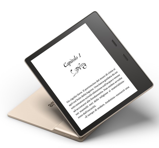 Il Kindle Oasis Gold è disponibile da poche ore al prezzo di 279,99 euro, in distribuzione a partire dal 22 marzo. Le caratteristiche sono quelle di un reader di altissimo profilo: schermo con 300ppi, display da 7 pollici, profilo sottile, memoria pari a 8 o 32GB (per una scelta personalizzata del numero di libri da portarsi appresso) e resistenza all’acqua grazie alla certificazione IPX8. Confermato anche il particolare design asimmetrico, appositamente studiato per rendere l’esperienza di lettura quanto più possibile simile a quella dei tradizionali libri cartacei: «ideale da impugnare con una mano sola. Il design ergonomico del nuovo Kindle Oasis sposta il centro di gravità sul palmo, in modo che il dispositivo poggi sulla tua mano come il dorso di un libro».