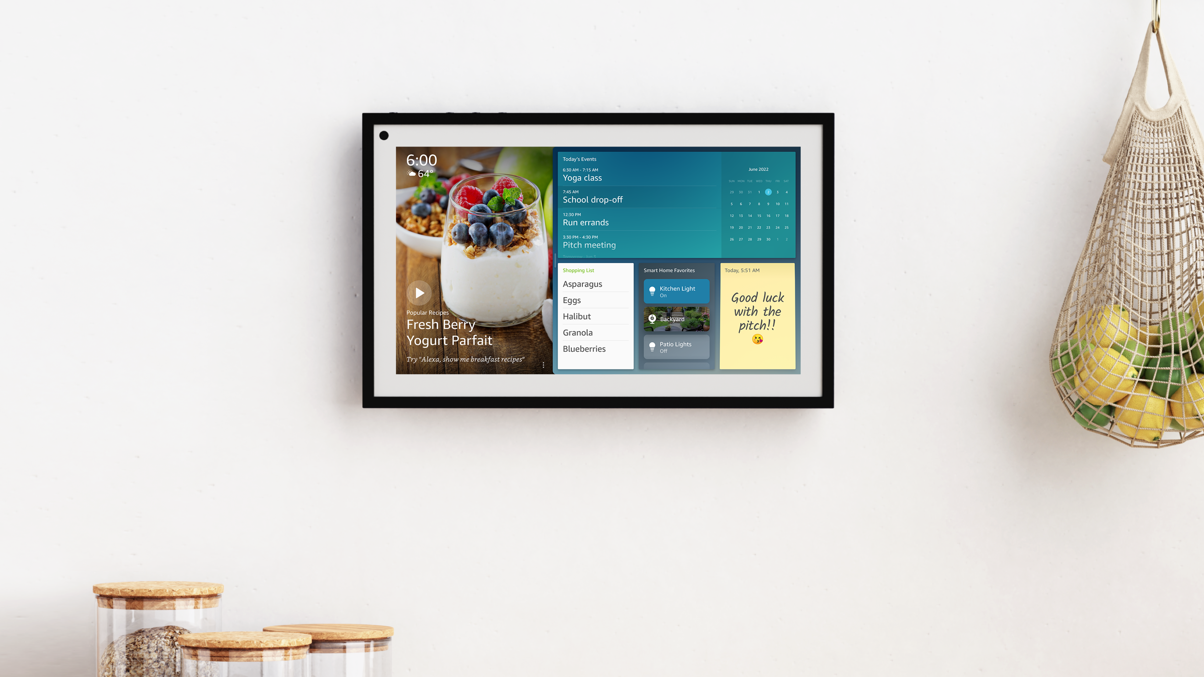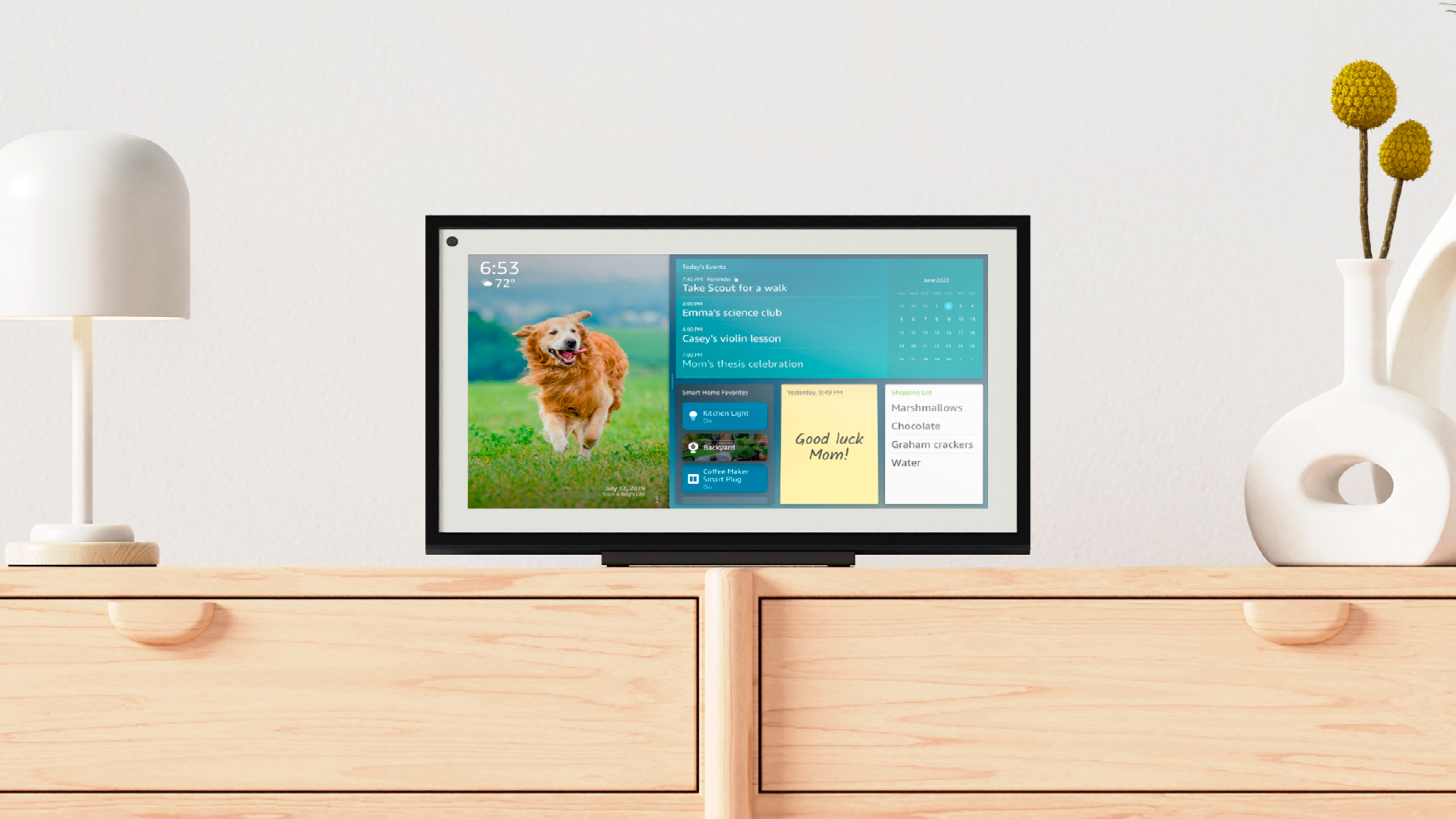 E in effetti il dispositivo, come anticipato nell’introduzione, è stato pensato per rendere la gestione dell’organizzazione quotidiana ancora più semplice. Con una schermata iniziale ridisegnata e i widget di Alexa, è possibile personalizzare il proprio Echo Show 15 per visualizzare il calendario di famiglia, gestire la lista delle cose da fare e impostare promemoria. Inoltre si adatta ad ogni ambiente domestico, trasformando il display in una cornice digitale a schermo intero, per mostrare le foto più belle, o immagini e disegni artistici disponibili. Echo Show 15 è a disposizione dei clienti ogni volta che ne hanno bisogno, con la capacità di mimetizzarsi quando non viene richiesto il suo supporto”.