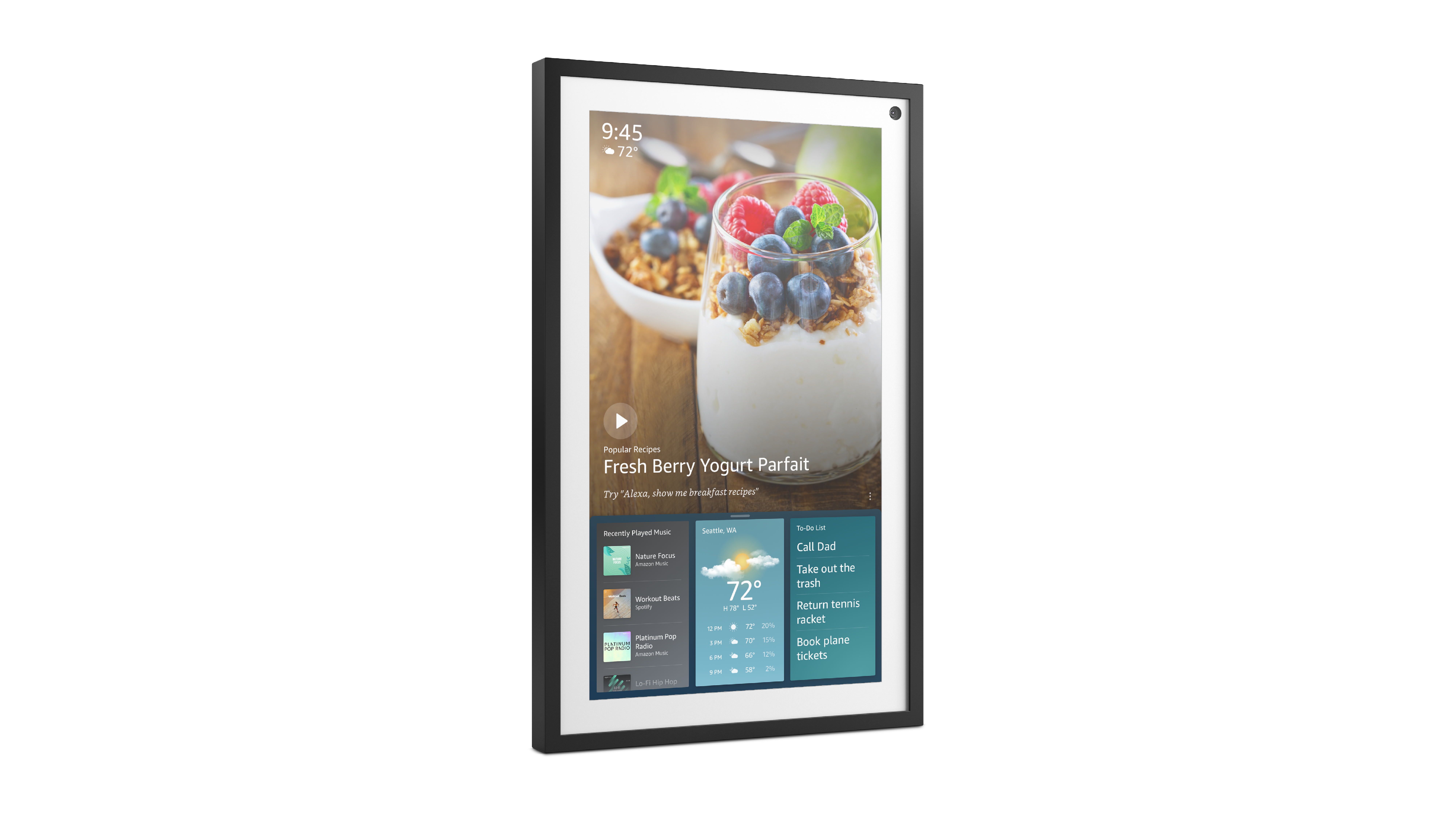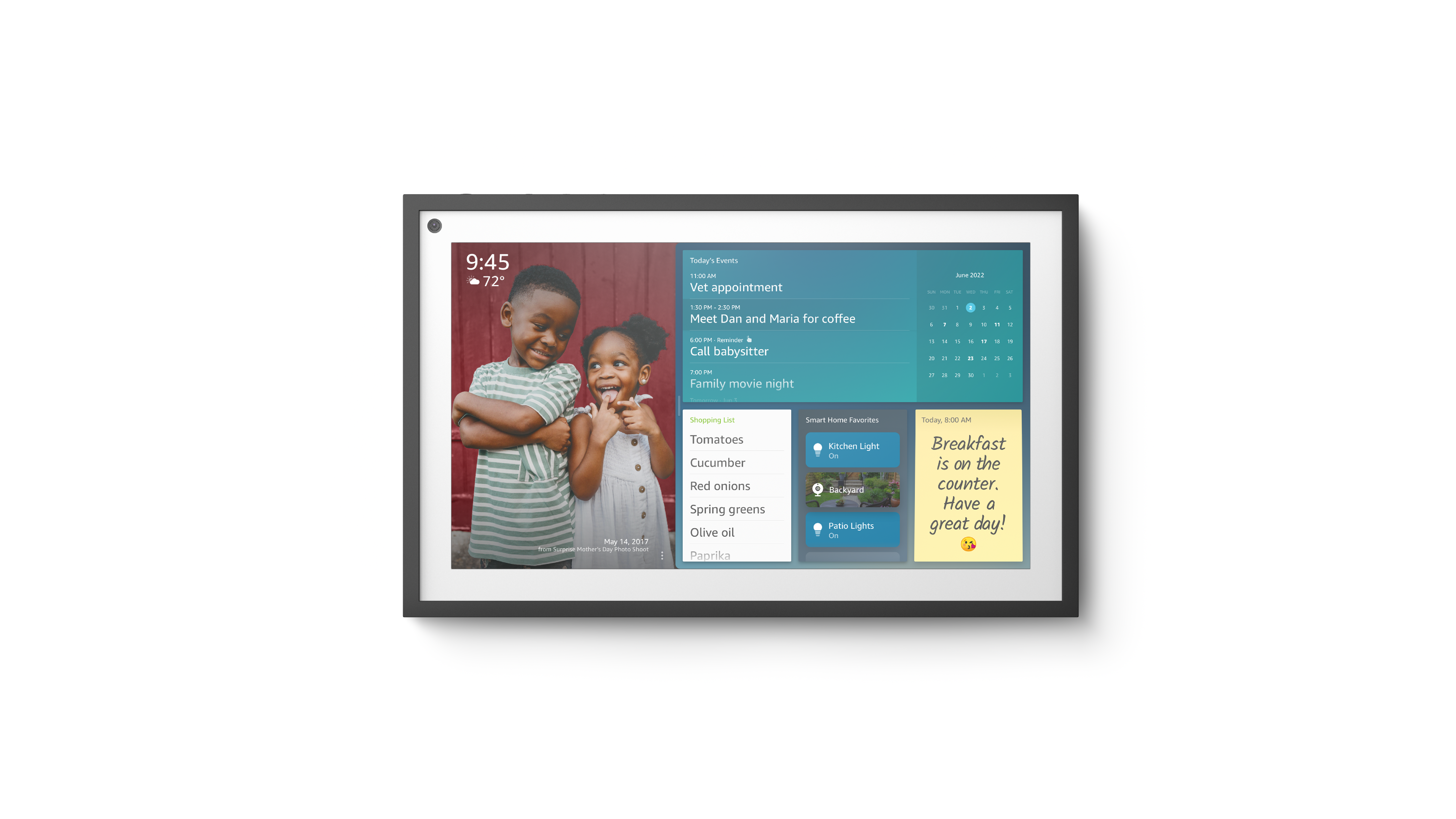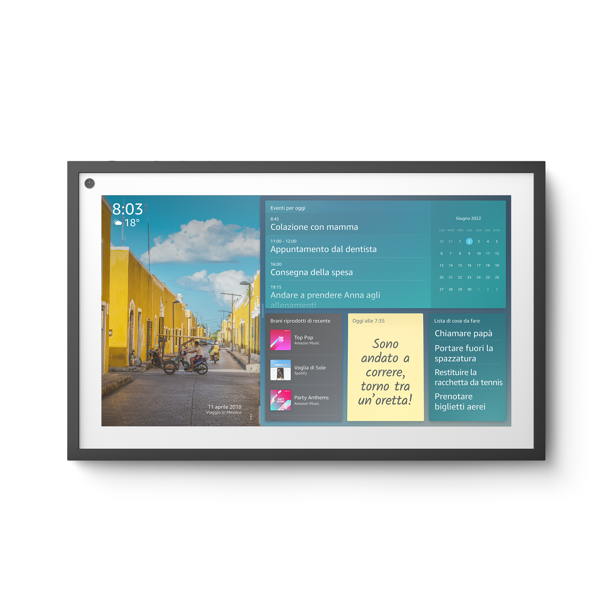 E in effetti il dispositivo, come anticipato nell’introduzione, è stato pensato per rendere la gestione dell’organizzazione quotidiana ancora più semplice. Con una schermata iniziale ridisegnata e i widget di Alexa, è possibile personalizzare il proprio Echo Show 15 per visualizzare il calendario di famiglia, gestire la lista delle cose da fare e impostare promemoria. Inoltre si adatta ad ogni ambiente domestico, trasformando il display in una cornice digitale a schermo intero, per mostrare le foto più belle, o immagini e disegni artistici disponibili. Echo Show 15 è a disposizione dei clienti ogni volta che ne hanno bisogno, con la capacità di mimetizzarsi quando non viene richiesto il suo supporto”.