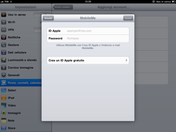 Nella versione 4.2 GM di iOS c'è anche la possibilità di accedere ad un account MobileMe con un Apple ID (funzionalità non attiva)