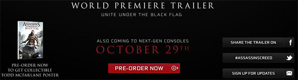 Questa mattina un nuovo leak: la redazione del sito All Games Beta è riuscita a scovare un’immagine (allegata di seguito) sul sito ufficiale, che conferma la data di uscita per il 29 ottobre. Ancora più interessante il riferimento alle prossime piattaforme, “Also coming to next-gen console”, dunque l’esordio sulla PS4 presentata la scorsa settimana pare ormai quasi certo. Ai packshot di Xbox 360, PlayStation 3, PC e Wii U se ne aggiungerà quindi uno per il prossimo hardware Sony e con tutta probabilità anche quello della Xbox 720 che Microsoft potrebbe annunciare già nel mese di aprile.