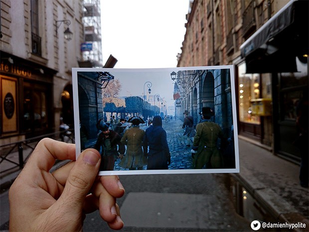 Il risultato è una galleria di immagini pubblicata su Tumblr, alcune delle quali allegate di seguito. Gli scatti sono stati ottenuti sovrapponendo la stampa di alcuni screenshot alla corrispondente location nel mondo reale, ottenendo così con la corretta prospettiva una sorta di “realtà aumentata". In altre parole, Hypolite ha aperto una finestra virtuale sulla Francia del XVIII secolo, confrontando alcune strade della capitale francese con la loro versione di oltre tre secoli fa. Ne emerge un’attenzione quasi maniacale riposta dalla software house nel proporre un’architettura il più fedele possibile a quella originale, per location come la Bastiglia o Notre-Dame.