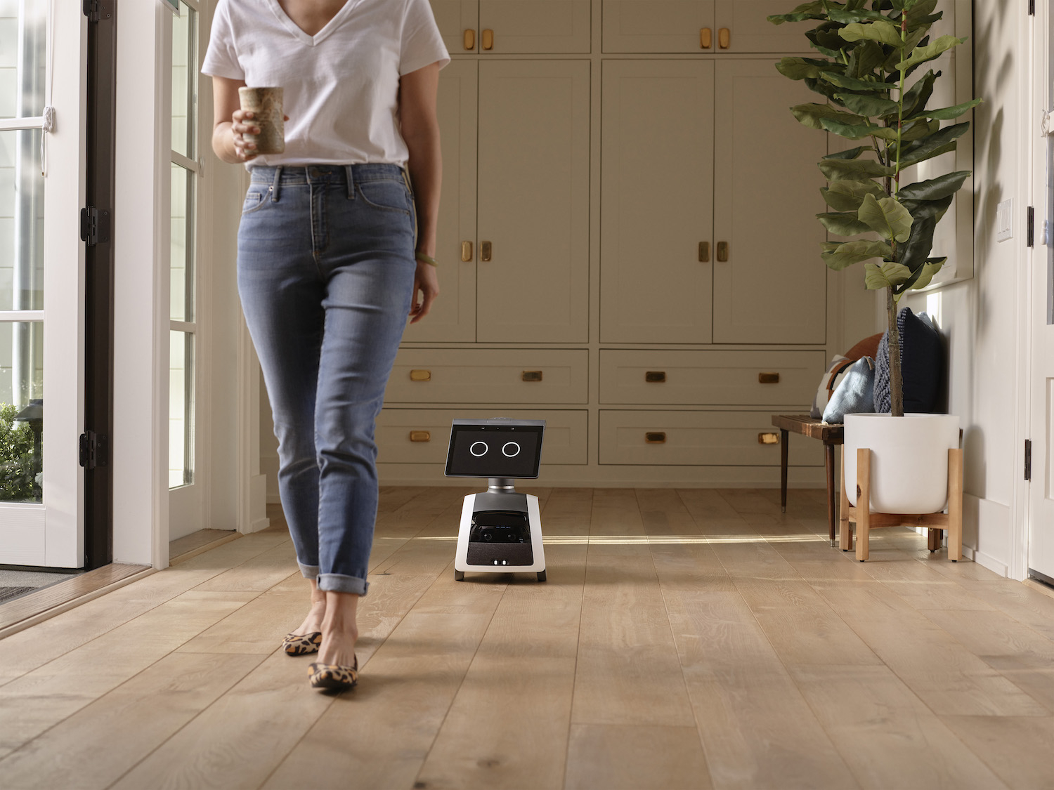 La mobilità di Astro ci permette di comandarlo in giro per casa anche da remoto. Questo significa, almeno sulla carta, che potremmo mandarlo in cucina a controllare se il forno è stato spento, farlo andare in camera a controllare i bambini o gli anziani – è in grado di identificare i volti delle persone – ma potremo anche chiedergli di portare qualcosa a qualcuno. Sul retro del robot, infatti, è stato inserito un portavivande o porta oggetti: ci basterà chiedere ad Astro di portare quella bottiglia di birra a qualcuno in casa e il piccolo robot si muoverà alla ricerca di quella persona.