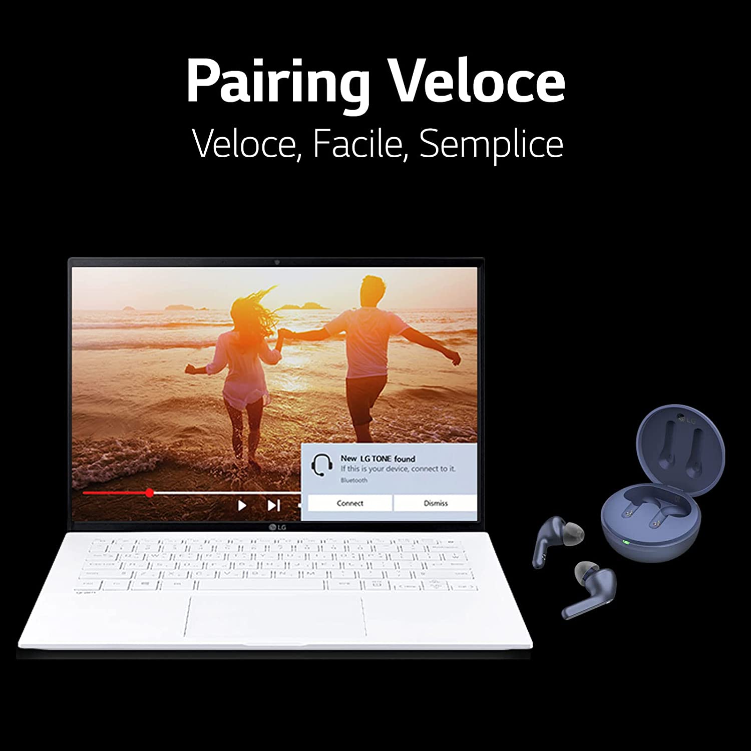 Gli auricolari LG TONE Free si associano in maniera rapida e senza intoppi con i PC dotati di sistema operativo Windows 10. Un pratico pop-up sullo schermo del PC ti avviserà che sono pronte per essere collegate. Le cuffie ti offrono inoltre fino a 15 ore di funzionamento con una sola ricarica: 7 ore con gli auricolari e altre 8 ore dalla custodia di ricarica. Non preoccuparti se hai poco tempo per ricaricarli, perché bastano 10 minuti di ricarica per darti 1 ora di musica. Falle tue ora a soli 40€ su Amazon, con le spedizioni rapide e gratuite di Prime. Ma fai in fretta, pochi pezzi.