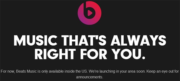 Come ben visibile dallo screenshot allegato di seguito, Beats Music sarà disponibile inizialmente in esclusiva sul territorio degli Stati Uniti. I responsabili del progetto non hanno ancora reso noto se e quando il servizio arriverà anche negli altri territori. La prossima settimana, con il debutto negli USA, sarà possibile saperne di più, per valutare se quanto offerto dal team del Dr. Dre ha le carte in regola per competere ad armi pari con le altre numerose realtà legate allo streaming dei brani.
