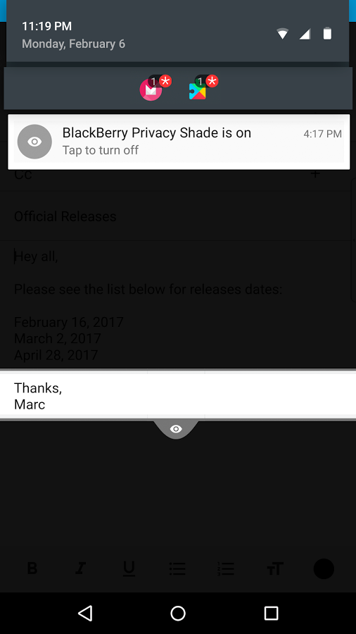 BlackBerry ha annunciato la disponibilità di una nuova app per i suoi smartphone Android che impedisce di violare la privacy delle persone nei luoghi pubblici. Privacy Shade è una soluzione semplice e ingegnosa allo stesso tempo che dovrebbe essere disponibile anche per altri dispositivi. Purtroppo si tratta un’esclusiva per gli utenti BlackBerry, gli unici che possono scaricare l’applicazione dal Google Play Store.