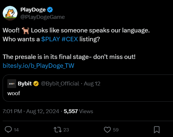 Binance rimane altamente selettivo con i suoi listing di meme coin. Tuttavia, PlayDoge (PLAY) potrebbe avere le carte in regola per attirare l’attenzione dell’ambito exchange, o almeno di piattaforme simili come Bybit.