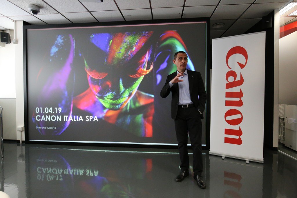 Marco Di Lernia di Canon Italia S.p.A. introduce l’incontro stampa destinato alla presentazione delle nuove videocamere
