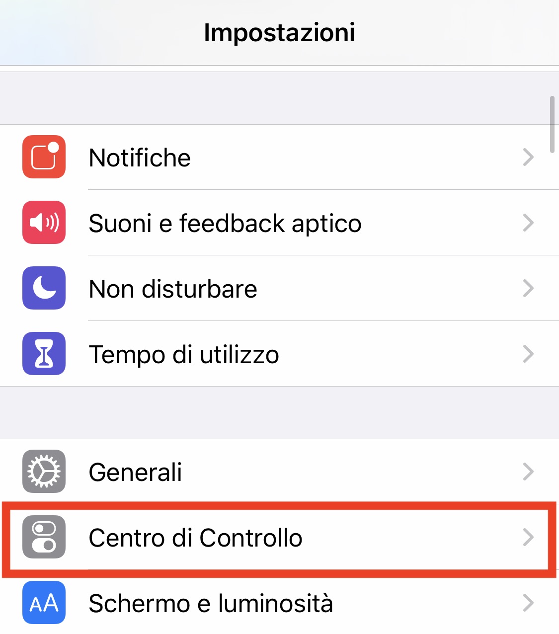 - Impostazioni -> Centro di Controllo -> Personalizza controlli