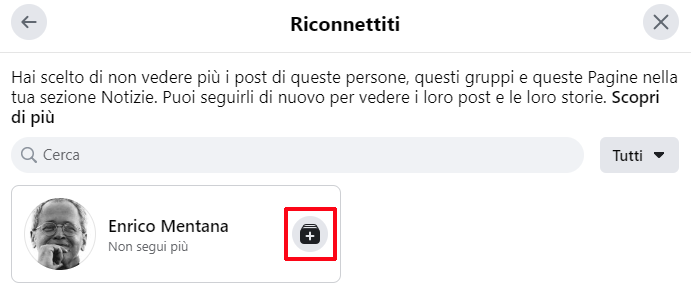 - A questo punto, non resta che fare clic sul simbolo + di fianco al nome dell’utente per tornare a seguirlo
