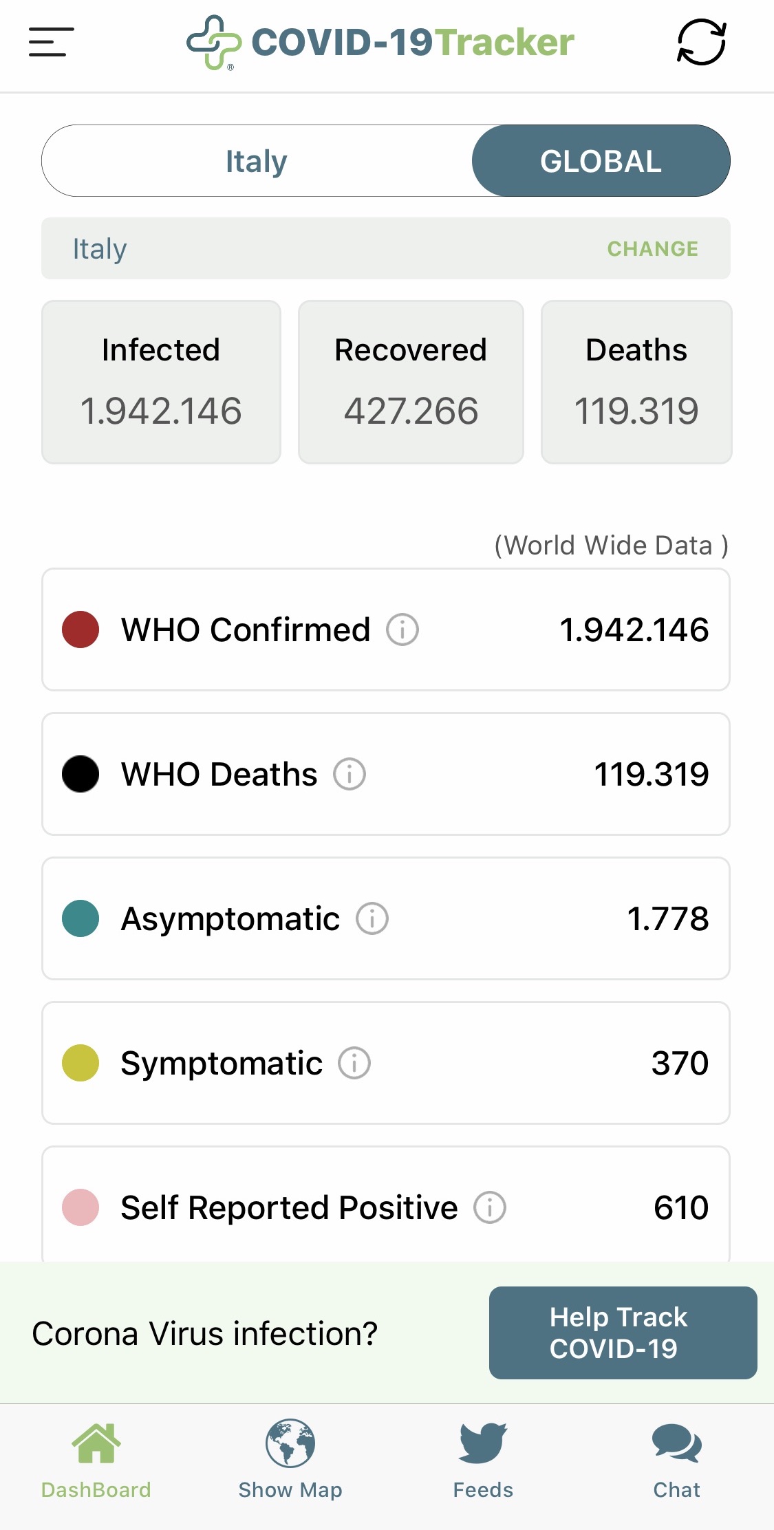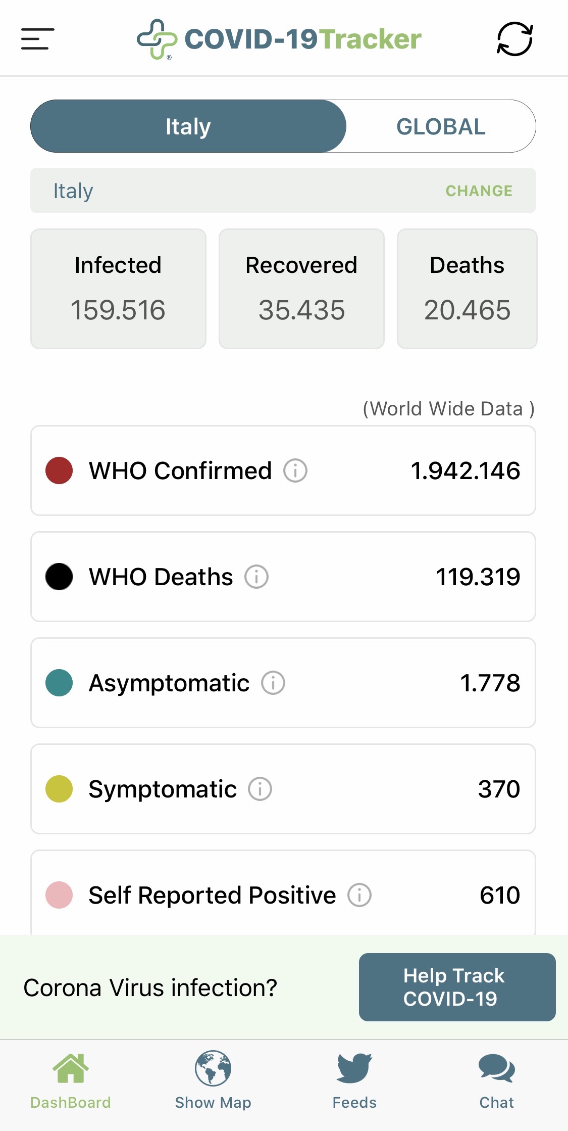 Esiste una versione mobile della dashboard COVID-19, raggiungibile a questo indirizzo, ma la sua visualizzazione non è sempre perfetta e la navigazione all’interno della piattaforma può risultare un po’ macchinosa. Per questo oggi vogliamo segnalarvi un’applicazione per iOS, HEALTHLYNKED COVID-19 Tracker, che prende i dati direttamente dalla Johns Hopkins University, unitamente a quelli di DXY e Worldometer, e li traduce in modo fruibile facilmente anche da mobile.