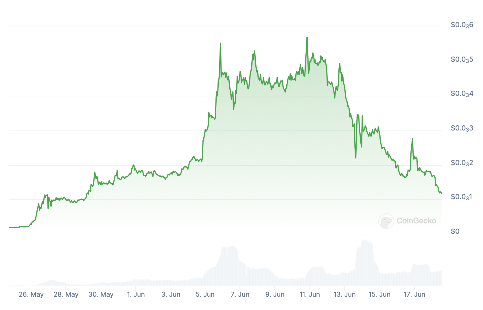Anche se questa è una brutta notizia per gli investitori recenti, il suo prezzo è ancora più di quattro volte superiore a quello di quando sono iniziati i dati di CoinGecko il 24 maggio.