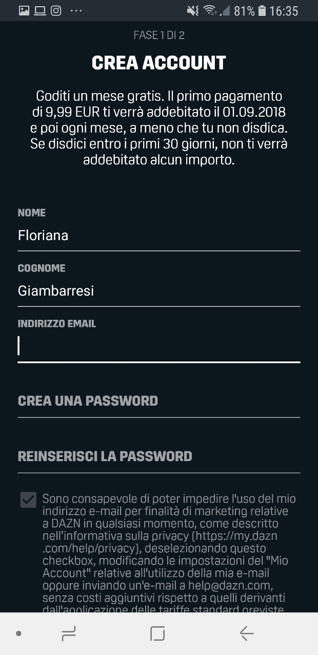 Iniziare a guardare DAZN è facile e veloce su ogni dispositivo: dopo aver scaricato e installato l’app, serviranno solo due passaggi per iniziare a fruire dell’esperienza di video streaming online. La procedura per la creazione del profilo richiede infatti solo ed esclusivamente due passaggi: