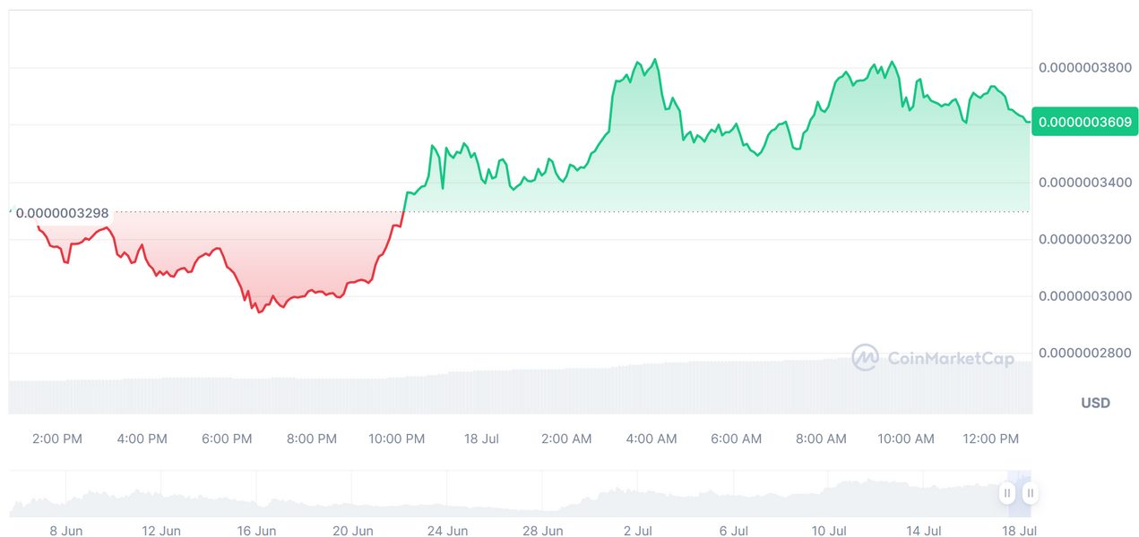 PeiPei (PEIPEI) è cresciuto del 10,72% oggi, essendo uno dei gettoni più interessanti rilasciati quest’estate, PEIPEI ha perfezionato il marketing delle meme coin. Anche il volume degli scambi del token nelle ultime 24 ore è aumentato del 60,3% fino a raggiungere i 52.972.314 dollari.