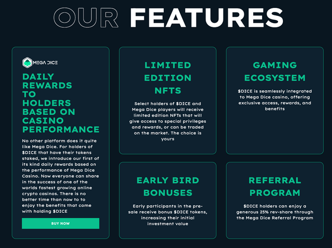 Sebbene l’ascesa di Notcoin sia stata inaspettata, Mega Dice Token sembra avere un progetto più sostenibile. Piuttosto che limitarsi a incentivare un approccio quasi senza senso, DICE funge da token di utilità per un sito di gioco online di successo con oltre 50.000 giocatori attivi.