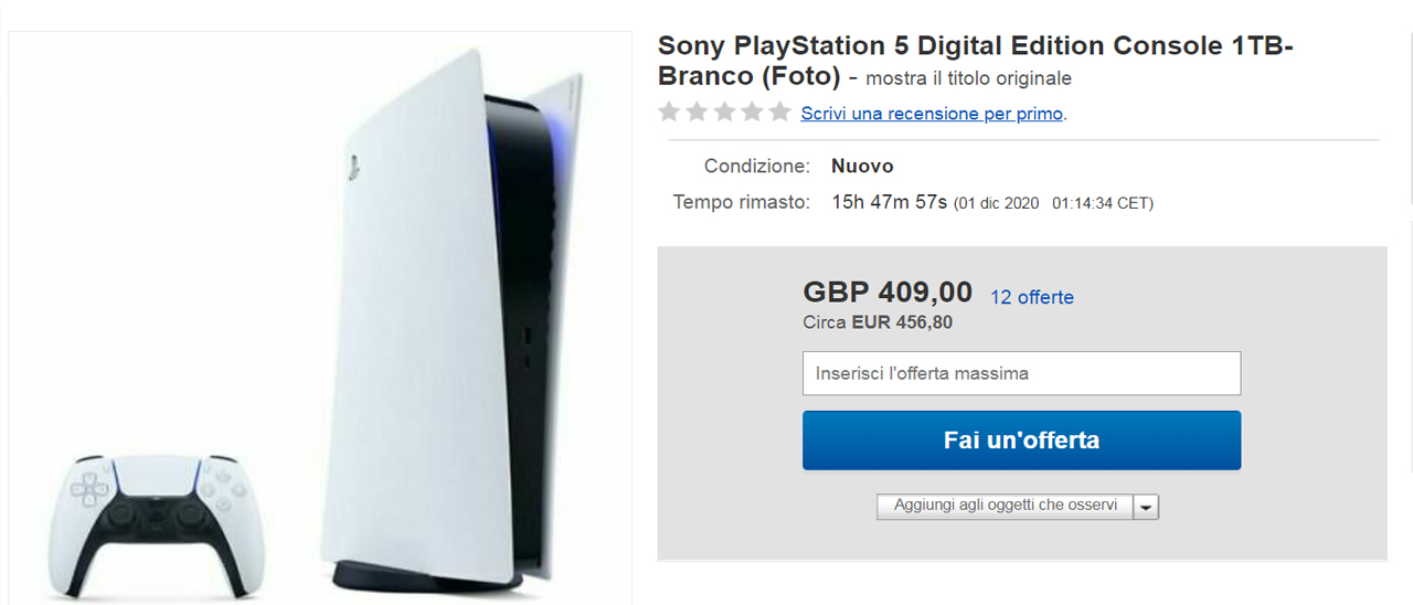 Il truffatore, come scritto prima, conta infatti sull’inesperienza di alcuni utenti o sul desiderio di quelli più esperti di accaparrarsi l’agognata PlayStation 5, che pensano di aver trovato un’occasione e provano quindi a capitalizzarla in fretta, per trarli in inganno. Purtroppo, nonostante la presa di posizione di eBay, qualche annuncio è attualmente ancora attivo. Una è perfino arrivata a raccogliere offerte per 6.821 euro.