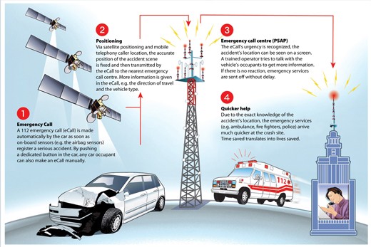 Grazie allo scenario formulato in base ai dati e l’automatismo dell’eCall – che chiama il 112 al posto del conducente o dei passeggeri, oppure può essere attivato da un bottone sul cruscotto sia da chi ha subito l’incidente sia da chi vi ha assistito e vuole mandare le coordinate esatte dell’incidente – si potrebbero salvare fino a 2.500 vite all’anno e ridurre la gravità delle lesioni dal 10 al 15%.