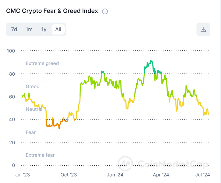 L’indice greed and fear di CoinMarketCap ora tende con decisione verso la paura, elemento che riassume accuratamente il sentiment del mercato.