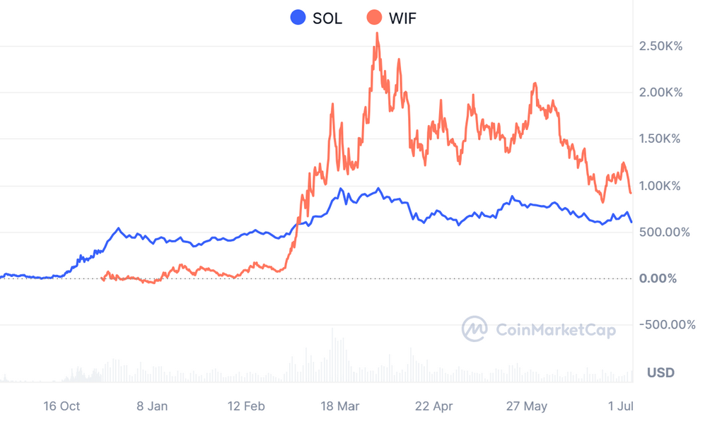 Tuttavia, WIF non mostra solo una correlazione con Solana, ma agisce anche come una versione beta dello stesso.