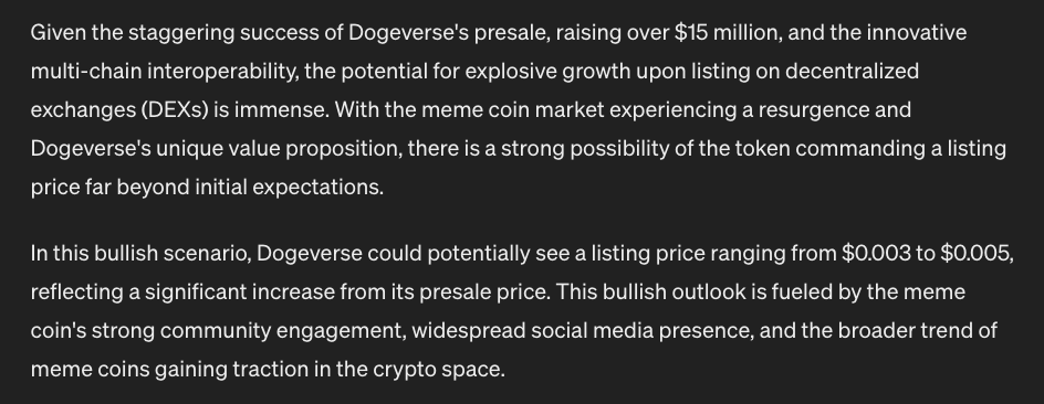 E secondo l’analisi di ChatGPT-4o, il token potrebbe averne tutto il potenziale una volta listato sui DEX. La prevendita di DOGEVERSE è stata un grande successo, raccogliendo oltre 15 milioni di dollari.