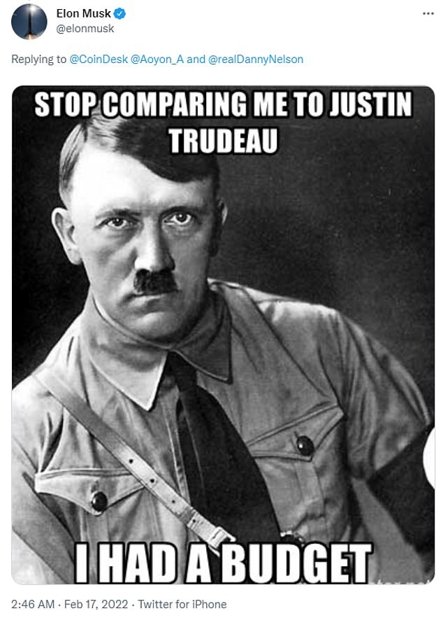 Elon Musk ne ha combinata un’altra delle sue, questa volta per un messaggio postato su Twitter. E a poco è servito il fatto di averlo rimosso quasi subito: ormai la frittata era fatta e sui social si era già scatenata la bufera. Ma cosa è successo di preciso? Il fondatore di Tesla aveva pubblicato un tweet sul suo account ufficiale dove, di fatto, paragonava il primo ministro del Canada Justin Trudeau ad Adolf Hitler. Nello specifico, Musk aveva postato una foto del Führer (la vedete in calce alla notizia) con scritto “Basta paragonarmi a Trudeau. Io ho un budget”.