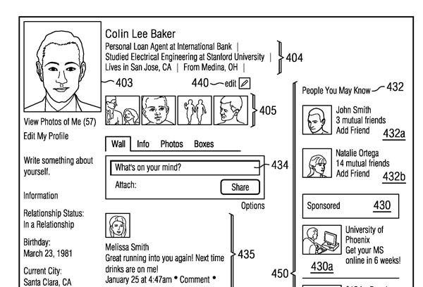Il brevetto risale al luglio 2011 ed è molto particolareggiato. L’oggetto del brevetto parla dell’utente che «può selezionare uno o più oggetti di social networking per sostituire annunci pubblicitari o altri elementi che normalmente vengono visualizzati ai visitatori».