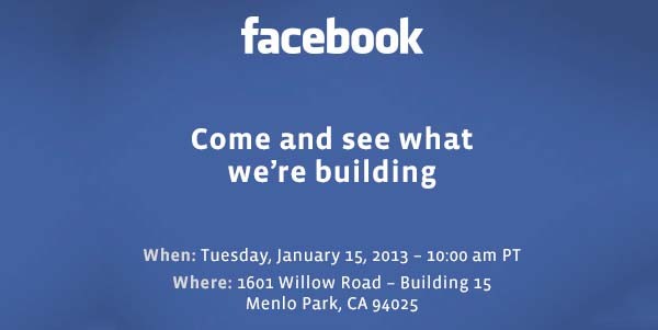 «Venite a vedere cosa stiamo costruendo». Dice soltanto questo l’invito alla conferenza stampa spedito dal quartier generale di Facebook ai mezzi di informazione. Il 15 gennaio, alle 10 (alle 19 in Italia), a Menlo Park qualcosa verrà certamente mostrato, ma cosa? I rumors dicono che potrebbe essere la volta buona per un device, forse il famigerato Facebook phone di cui si parla da almeno due anni, oppure un altro strumento. Ma potrebbe anche riguardare novità immateriali, servizi o restyling. Uno è appena stato implementato, per la timeline.