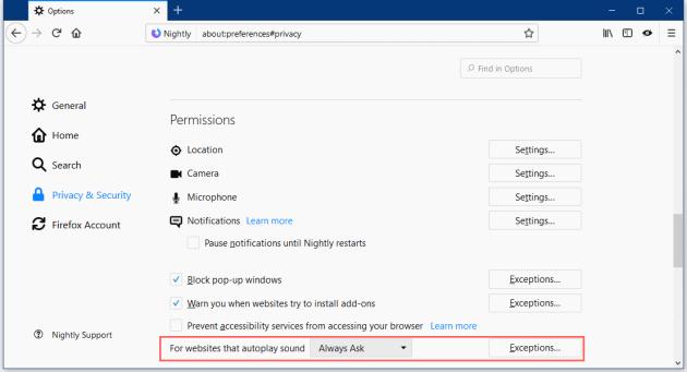 We are adding the ability to block and configure autoplaying videos with sound in Firefox, can check it out in @FirefoxNightly today (comments welcome) pic.twitter.com/k9K9hQC9Ye