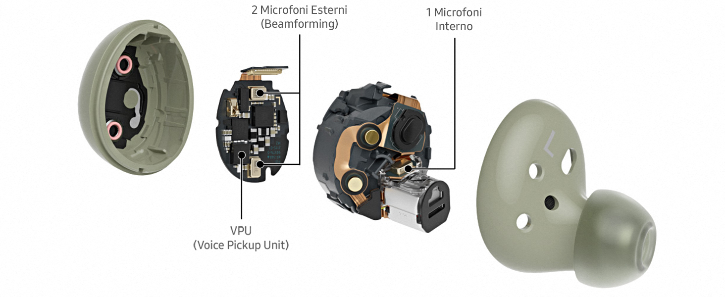 Come parte dell’ecosistema Galaxy, i Buds2 sono i compagni perfetti per ogni smartphone, tablet o smartwatch Galaxy, e sono dotati di altoparlanti a due vie restituiscono alti nitidi e chiari e bassi profondi, mentre la Cancellazione Attiva del Rumore consente di rimuovere i rumori indesiderati. Il design a bassa sporgenza delle cuffie senza fili riduce al minimo le interruzioni del vento. Per sentire l’ambiente circostante, è sufficiente sintonizzarsi di nuovo grazie a tre diversi livelli regolabili di suono ambientale.