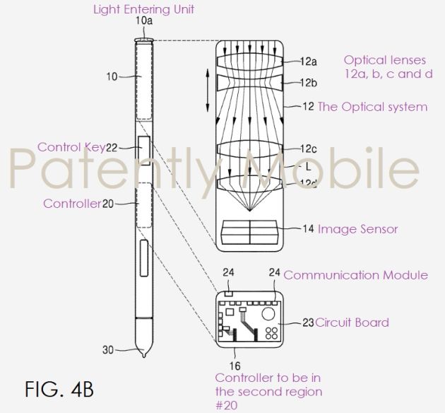 La stilo del Galaxy Note 9 permette di eseguire diverse operazioni a distanza, grazie alla connettività Bluetooth. Un brevetto, depositato dal produttore coreano nel 2017 e approvato ieri dallo U.S. Patent and Trademark Office, descrive una futura S Pen con fotocamera integrata. L’accessorio potrebbe quindi essere fornito insieme al Galaxy Note 10.