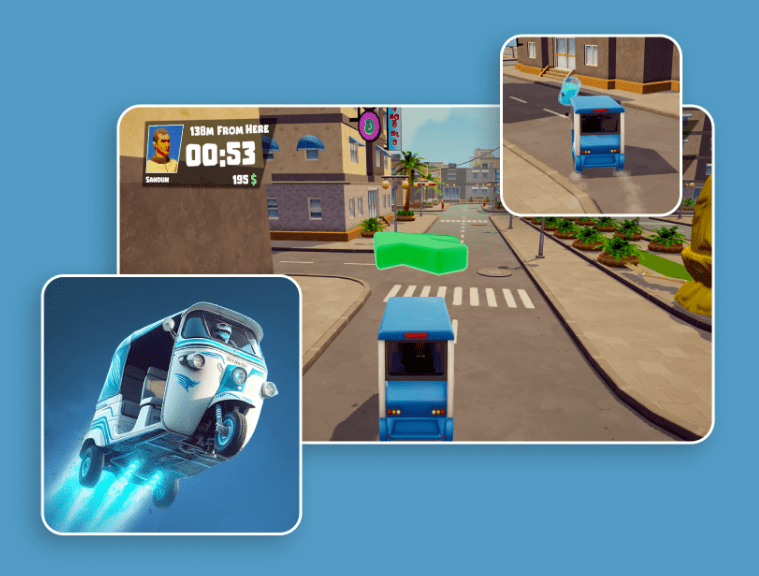 Sfreccia per le strade virtuali, prendi i passeggeri e guadagna token TUK con ogni corsa riuscita.