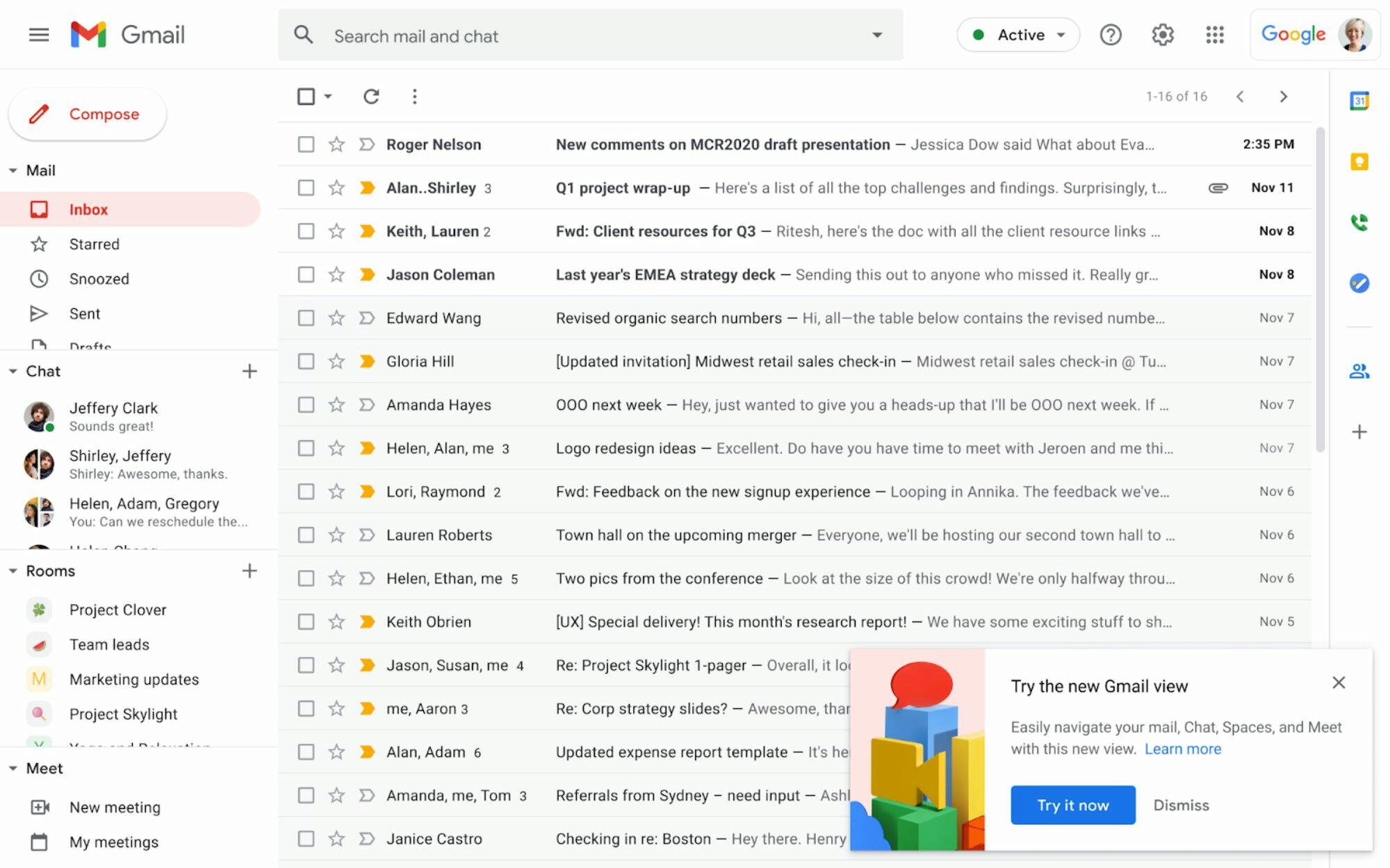 L’obiettivo di Google era quello di rinnovare il suo servizio mail per renderlo sempre più semplice da usare, con un nuovo menu di navigazione che consentisse agli utenti di passare per esempio facilmente dalla posta in arrivo a conversazioni importanti e a partecipare a riunioni, senza dover passare da una scheda all’altra o aprire una nuova finestra. E a giudicare da quanto fino a ora visto, c’è riuscito perfettamente.