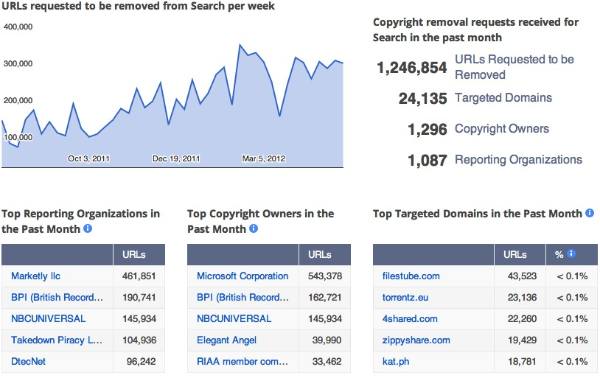 Trattasi di una cifra superiore al numero di link rimossi nell’intero 2009, a conferma di come l’azienda abbia deciso di venire in soccorso di major e società che intendono far valere i propri diritti su contenuti multimediali, software ed altri contenuti digitali. Il numero di pagine rimosse è cresciuto esponenzialmente negli ultimi anni, ma a tale fenomeno la stessa Google non riesce a fornire una spiegazione: da un lato, infatti, ciò potrebbe essere dovuto ad un incremento nelle attività di pirateria online, dall’altro invece il tutto potrebbe essere il frutto della disponibilità di strumenti maggiormente efficienti nell’individuazione delle infrazioni.