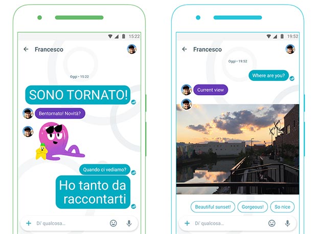 Tra i punti di forza dell’applicazione ci sono quelle che bigG chiama Risposte Intelligenti, pensate per consentire di replicare ad un messaggio con un semplice tocco. Un paio di esempi: se un amico scrive “Stai arrivando?”, Allo suggerirà un “Sì”, mentre ricevendo la foto di un cagnolino si potrà selezionare immediatamente “Che carino!” senza doverlo scrivere. Il sistema è pensato per imparare nel tempo lo stile dell’utente, così da affinare le previsioni.