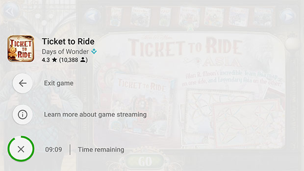 Una volta avviata la demo, nella parte inferiore sinistra del display compare un pulsante con l’icona di Play Store contornata da un conto alla rovescia, utile per capire a quanto ammonta il tempo rimanente. Premendola, come si può vedere dal secondo degli screenshot allegati di seguito, si ottengono informazioni aggiuntive ed è possibile interrompere in qualsiasi momento lo streaming.