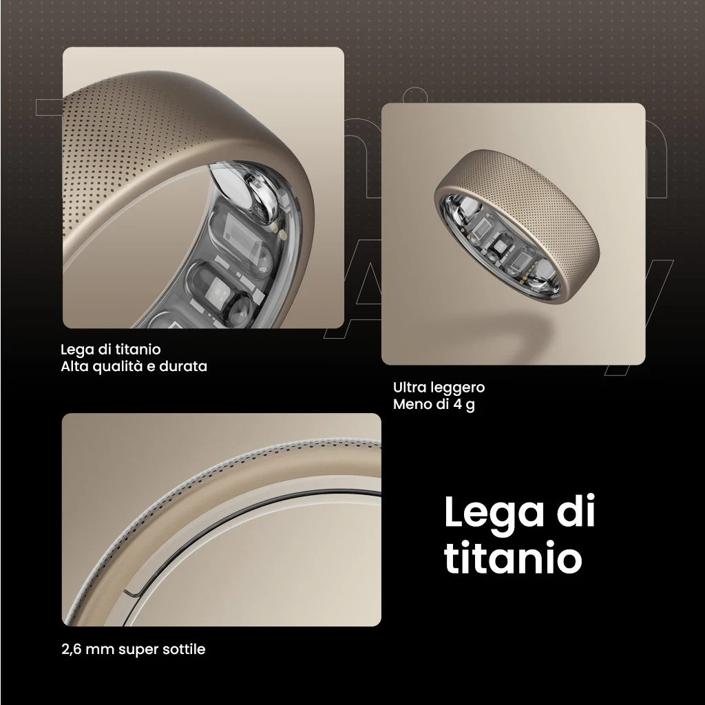 Realizzato in lega di titanio, materiale Premium che non fa sudare e che ha buone caratteristiche anallergiche, Helio Ring consente una misurazione decisamente accurata dei dati sulla salute, col risultato di un monitoraggio, un’analisi e una guida al recupero senza precedenti. Amazfit Helio Ring è pensato per essere utilizzato al meglio se abbinato a uno smartwatch Amazfit, come Amazfit Cheetah Pro, Amazfit T-Rex Ultra o Amazfit Falcon.