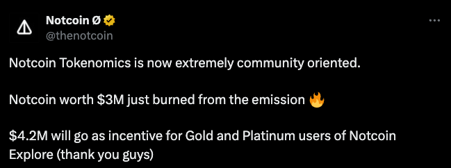 Questa non è stata solo una vistosa trovata pubblicitaria: è stata una mossa calcolata per restringere l’offerta di Notcoin (e potenzialmente aumentarne il valore).