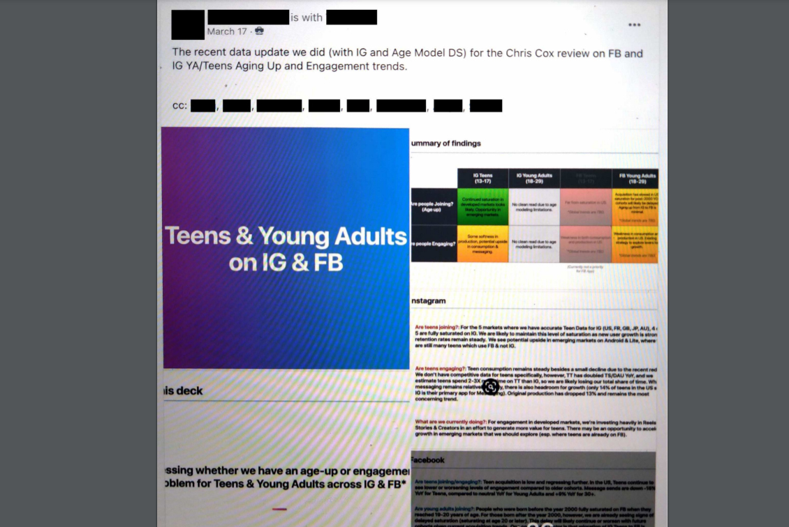 Sulla base infatti sempre dei documenti interni di Facebook Inc. ottenuti dall’informatore, che tra l’altro ora il Wall Street Journal ha deciso in parte di rendere pubblici in formato Pdf a questo indirizzo, il colosso di Menlo Park non solo non avrebbe fatto molto per tutelare al meglio gli adolescenti e i bambini online dai contenuti dannosi, ma avrebbe addirittura formato un team per studiarne le abitudini sui suoi servizi di rete sociale, così da fidelizzarli verso prodotti creati e indirizzati a quel pubblico.