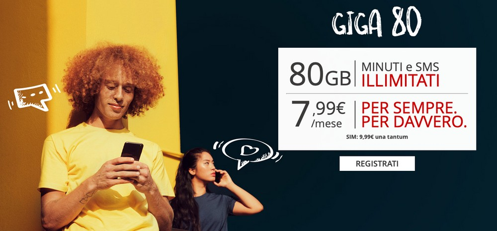 La seconda proposta di Iliad riguarda invece i dispositivi con implementati il 4G/4G+: al costo di 7,99 euro al mese, Giga 80 offre nel dettaglio:
