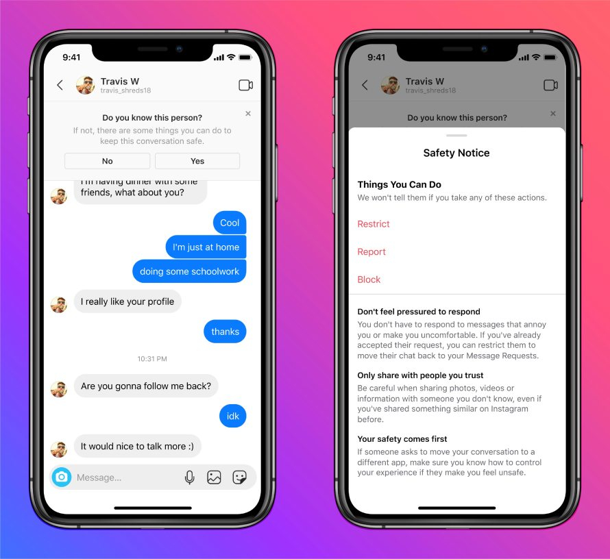 In tal senso la piattaforma sta introducendo nuove funzioni per limitare il linguaggio scurrile e l’impatto dei cyberbulli sull’ecosistema del network, e per impedire per esempio a persone adulte di inviare messaggi a utenti minorenni che non li seguono: in questi casi Instagram invierà loro una notifica che lo avvertirà che non è possibile inviare direct alla persona in questione. In caso di violazioni, l’account del disturbatore verrà sanzionato, non potrà vedere le foto pubblicate dell’altro soggetto, né il suo profilo nelle schede Esplora, Reels o Account suggeriti, e verrà addirittura sospeso in casi estremi.