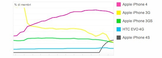 L’ultima iterazione del Melafonino si piazza dunque alle spalle della versione 4, la quale ha già da tempo conquistato la vetta e può vantare un divario con le inseguitrici piuttosto evidente. A vantaggio dell’iPhone 4S v’è però il brevissimo tempo in cui ha avuto modo di fare capolino sul portale di photo sharing targato Yahoo, superando rapidamente dispositivi quali l’HTC Evo 4G ed i modelli 3 e 3GS di iPhone, presenti sul servizio di Sunnyvale da ben più tempo.