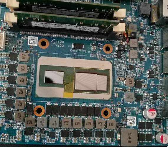 Il processore, utilizzato su una scheda madre NUC, sfrutta il design MCM (multi-chip module) e lo scambio di informazioni tra i tre chip avviene mediante una connessione Embedded Multi-Die Interconnect Bridge (EMIB). Il package occupa un’area piuttosto grande, ma è comunque inferiore a quella occupata dalle attuali soluzioni che prevedono CPU, GPU e memoria GDDR5. I tre chip sono chiaramente visibili nell’immagine. Da sinistra a destra ci sono il processore Intel Core di ottava generazione, la GPU Radeon Vega e la memoria HBM2.