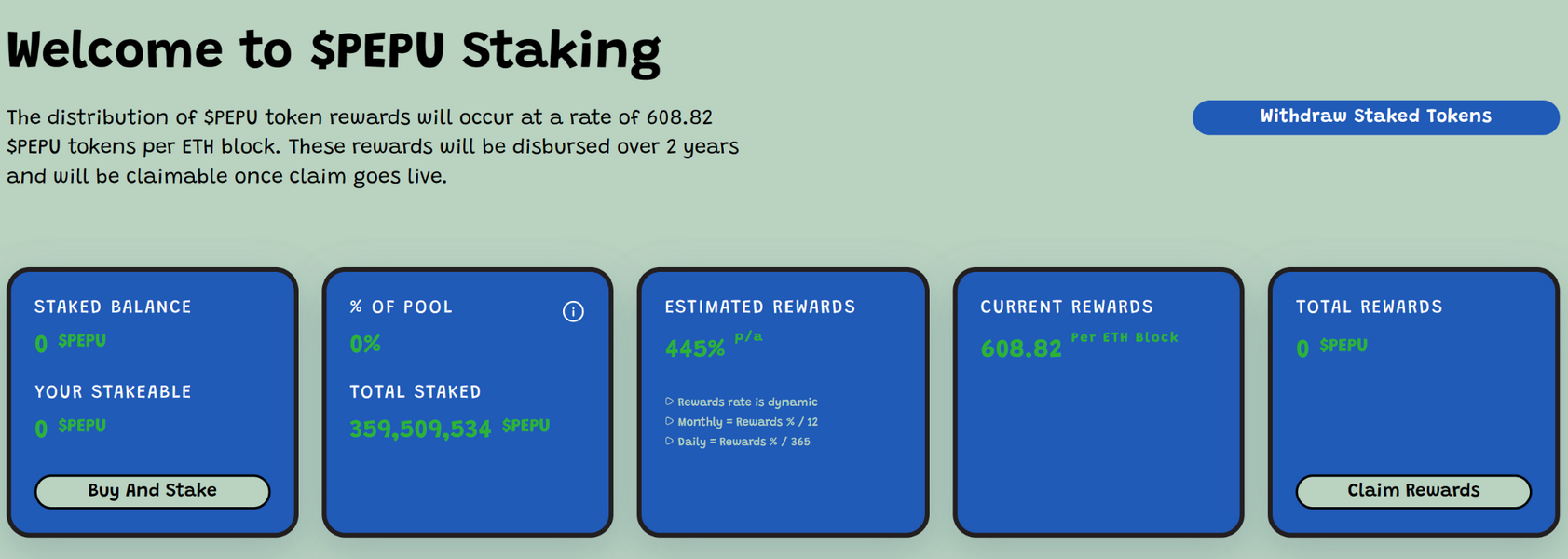 In effetti, lo staking pool di Pepe Unchained offre attualmente un tasso di ricompensa superiore al 400%, molto più alto dello standard del settore del 5-7%.