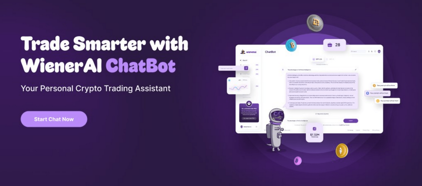 La caratteristica principale di WienerAI è un bot di trading AI che mira a diventare la “ChatGPT del trading di criptovalute”.