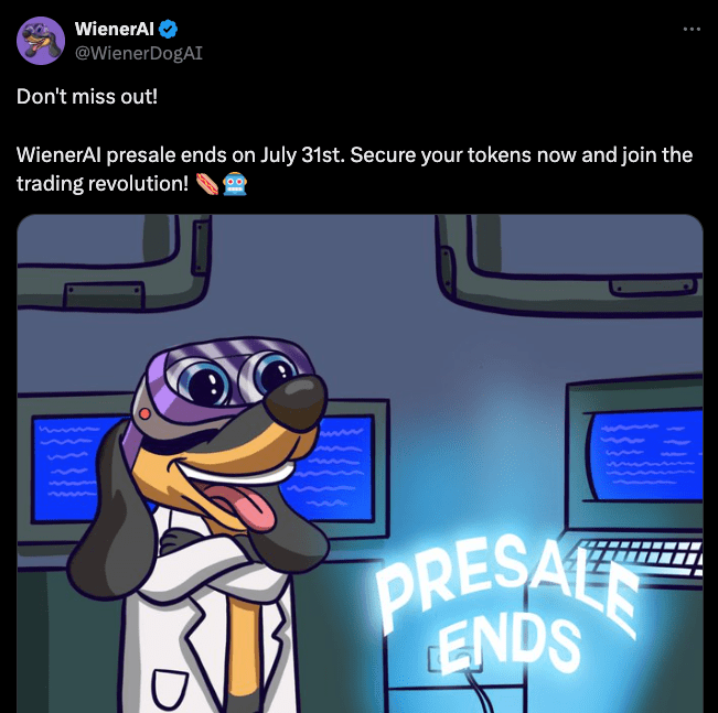 Il progetto crypto a tema cane Wiener AI (WAI) è entrato negli ultimi giorni della sua fase di prevendita.