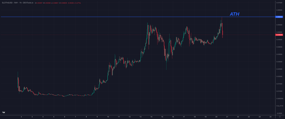 Anche se da allora SLOTH è tornato a circa $ 0,048, probabilmente a causa delle prese di profitto, i numeri sono ancora impressionanti.